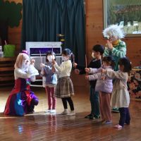 (リズム・・・ピアノに合わせて身体を動かし、動物や乗り物などを表現するリトミック。)